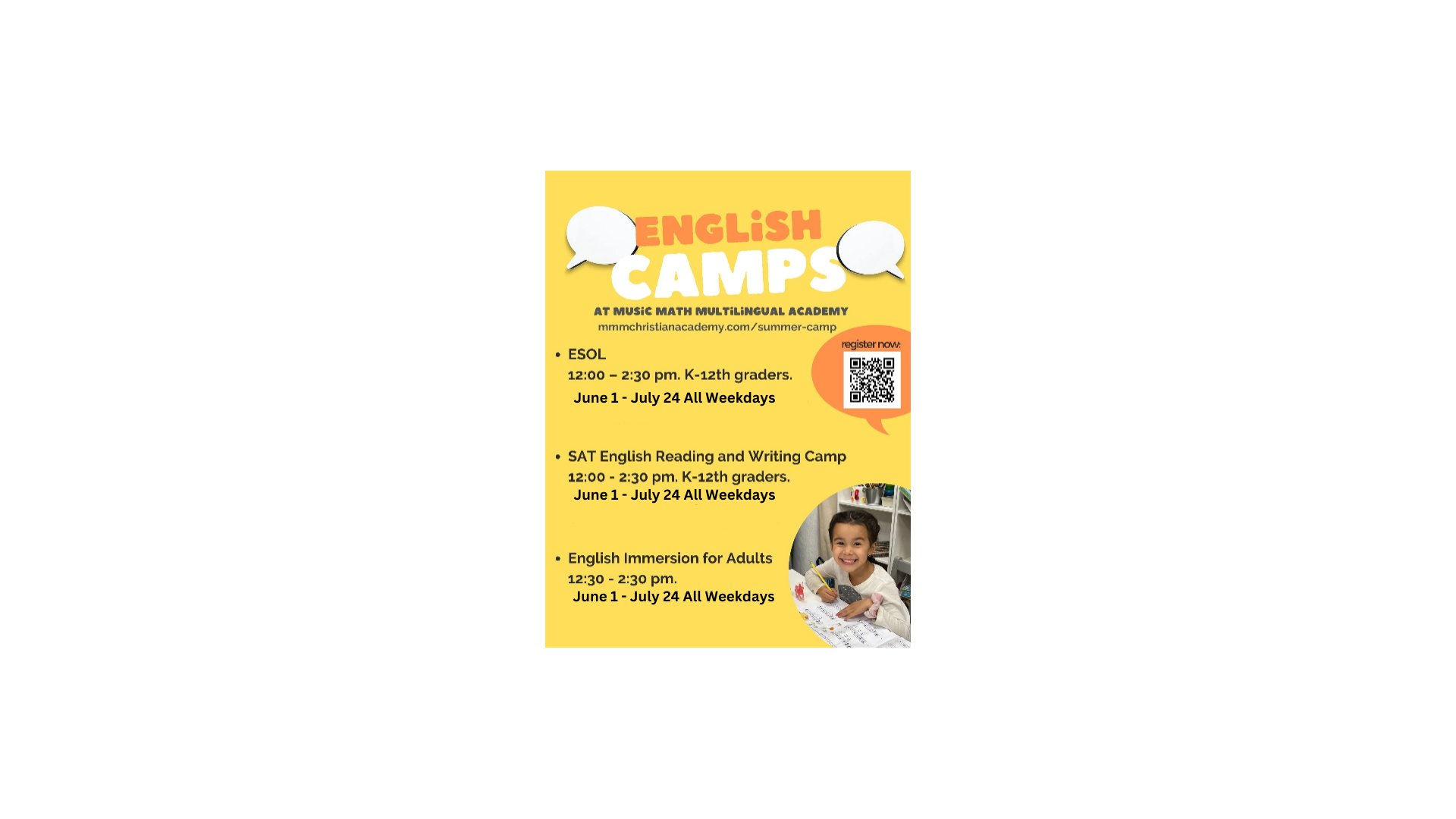Our summer camps are hosted by Music Math Multilingual Academy at our campus with the same academic quality guaranteed.
